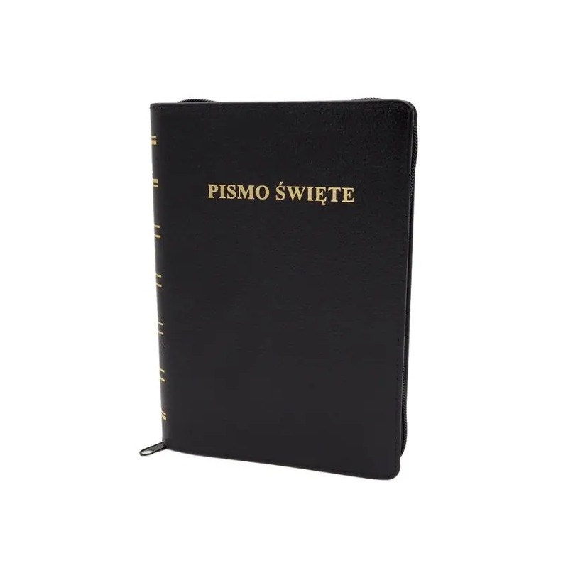 Biblia Warszawska - format średni, oprawa skórzana PREMIUM, zamek, złocone brzegi, czarna.